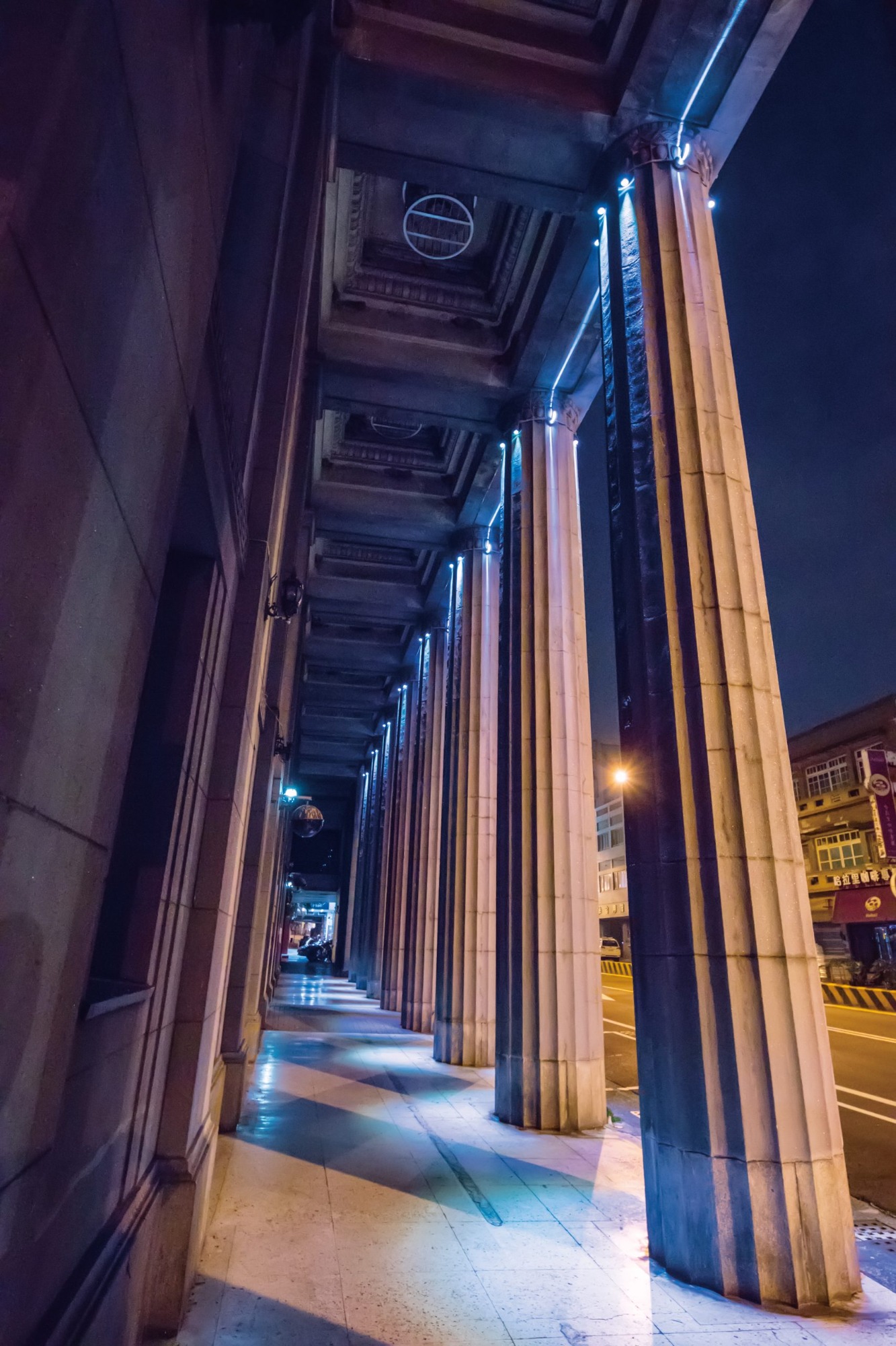 城市是由街道、建築與人組合而成,人在夜間的活動點亮城市,而光隨著人們不同的活動而變化,光因此變成有機。在老建築上種植光,長廊列柱上光影流動變化。而矩形窗戶,由內部透出絢爛的光采。