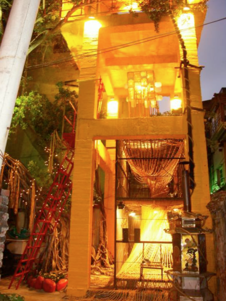 原有基地充滿生活的流失與斷裂的痕跡。其中有盤結的百年榕樹、廢棄的水泥結構框架、鴿籠、鐵樓梯與金爐,以及上述事物共同營造的飄散與自由意象。創作者重新清理基地後進行裝置。鏽蝕的鐵籠留不住那過往的生活片段,塗成黃色的巨大水泥框架象徵危險警示,大量麻繩則從頂端方形木籠中的球體由上而下,在鐵籠間如同沙漏般流竄其間,並往外糾結纏繞。密實的鐵籠呈現了窺視生活記憶的一種神祕空間。藉由作品將環境改善後,逐漸成為在地居民聚集閒聊的空間。