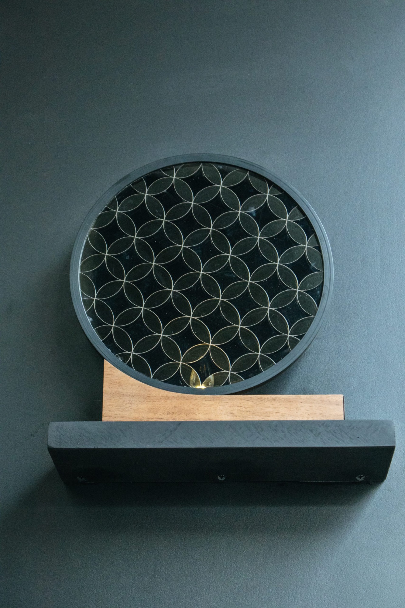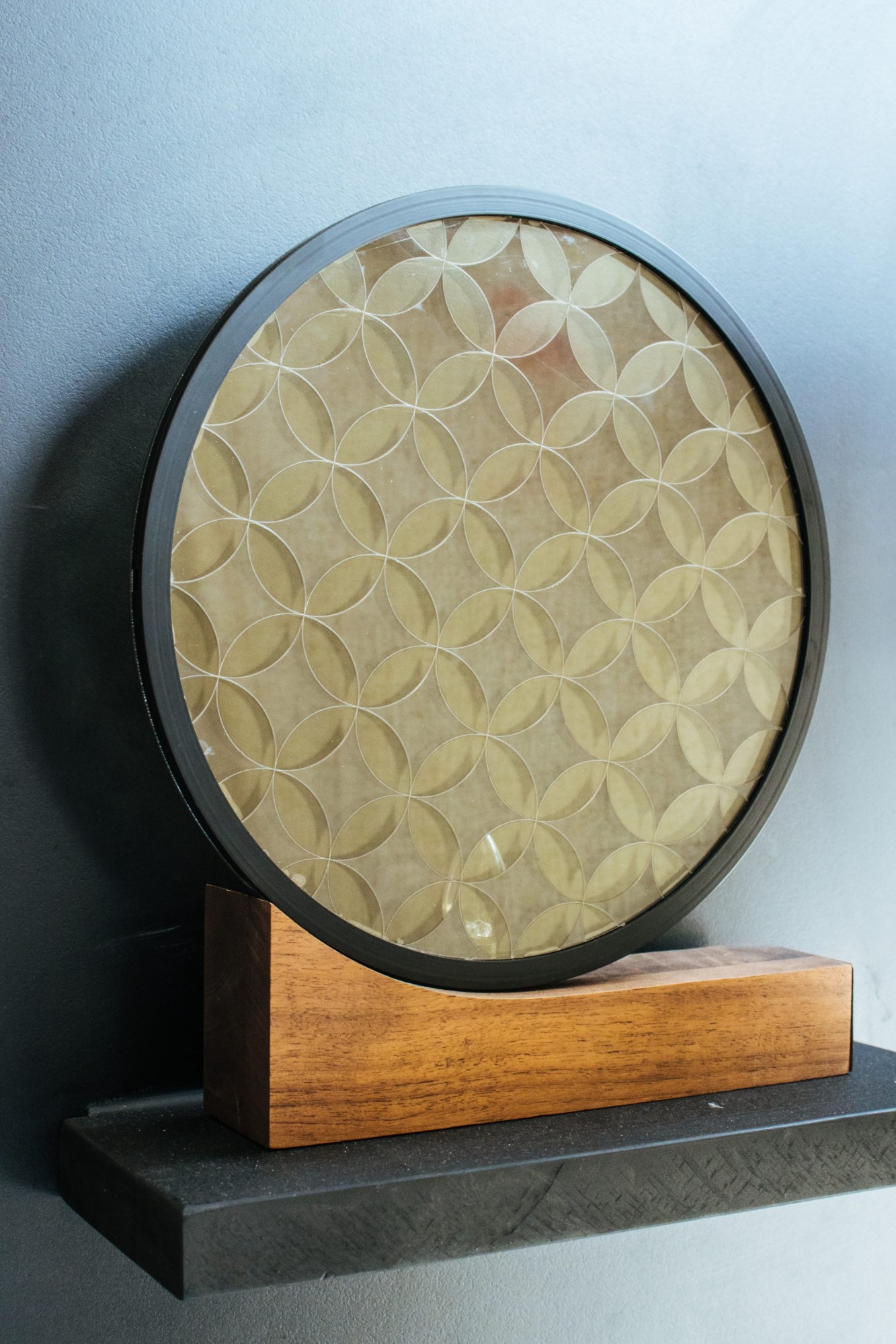 透過偏光片過濾光線的特性所設計的壁掛裝飾。以漸層與錯視手法,讓旋轉的圓產生立體且具有延伸方位的效果,形成三種不同的偏光角度,呼應一天中的早上、中午、晚上時段太陽所在的位置。